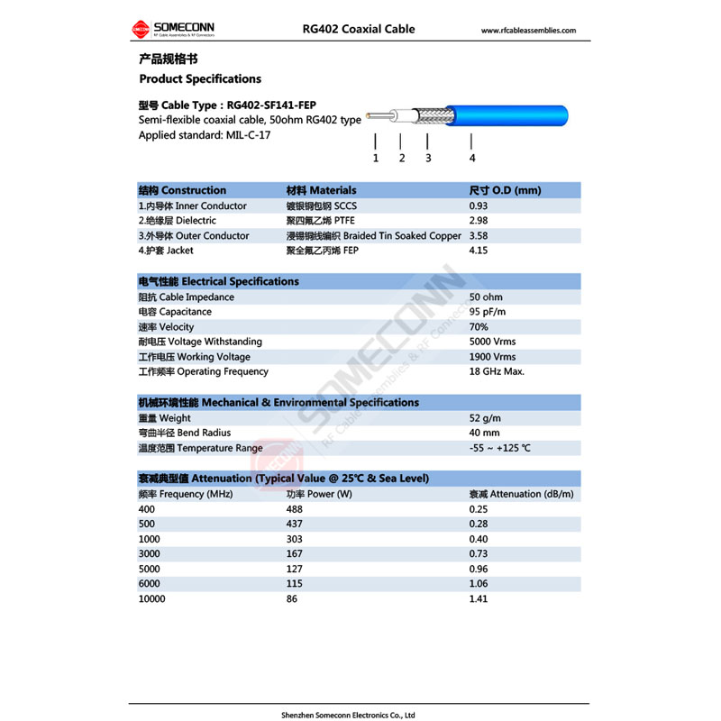 RG402 Semi-rigid Coaxial Cable Specifications