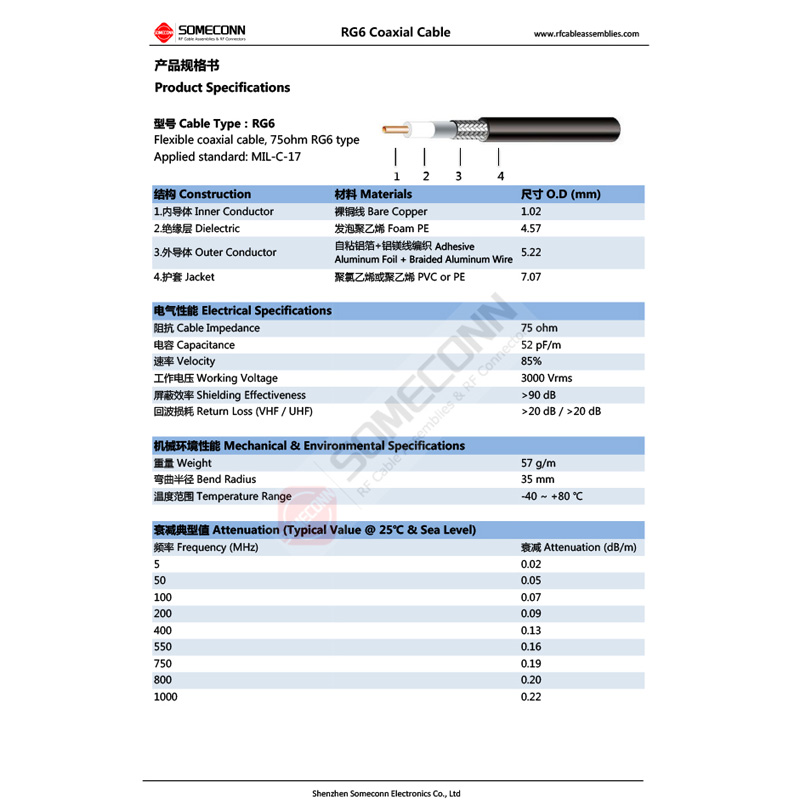 RG6 Coaxial Cable Specifications -75 Ohm